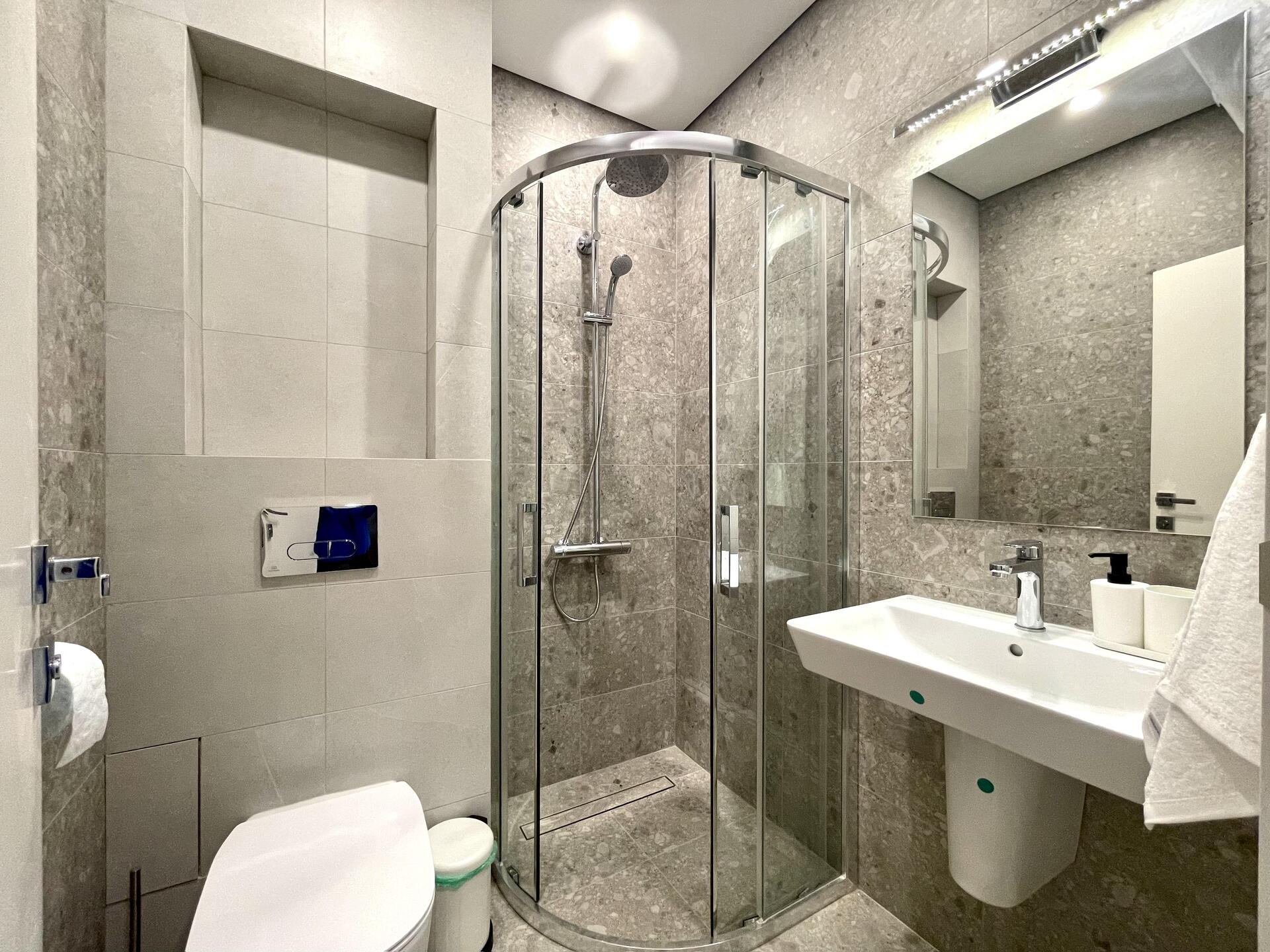 All apartments are fully equipped with high-quality finishing and a ready-made bathroom. Some apartments are equipped with a kitchen and furnished, in others you can choose the furniture to your liking. No dirty and noisy work of neighbors after the delivery of the object – nothing will disturb your peace of mind.