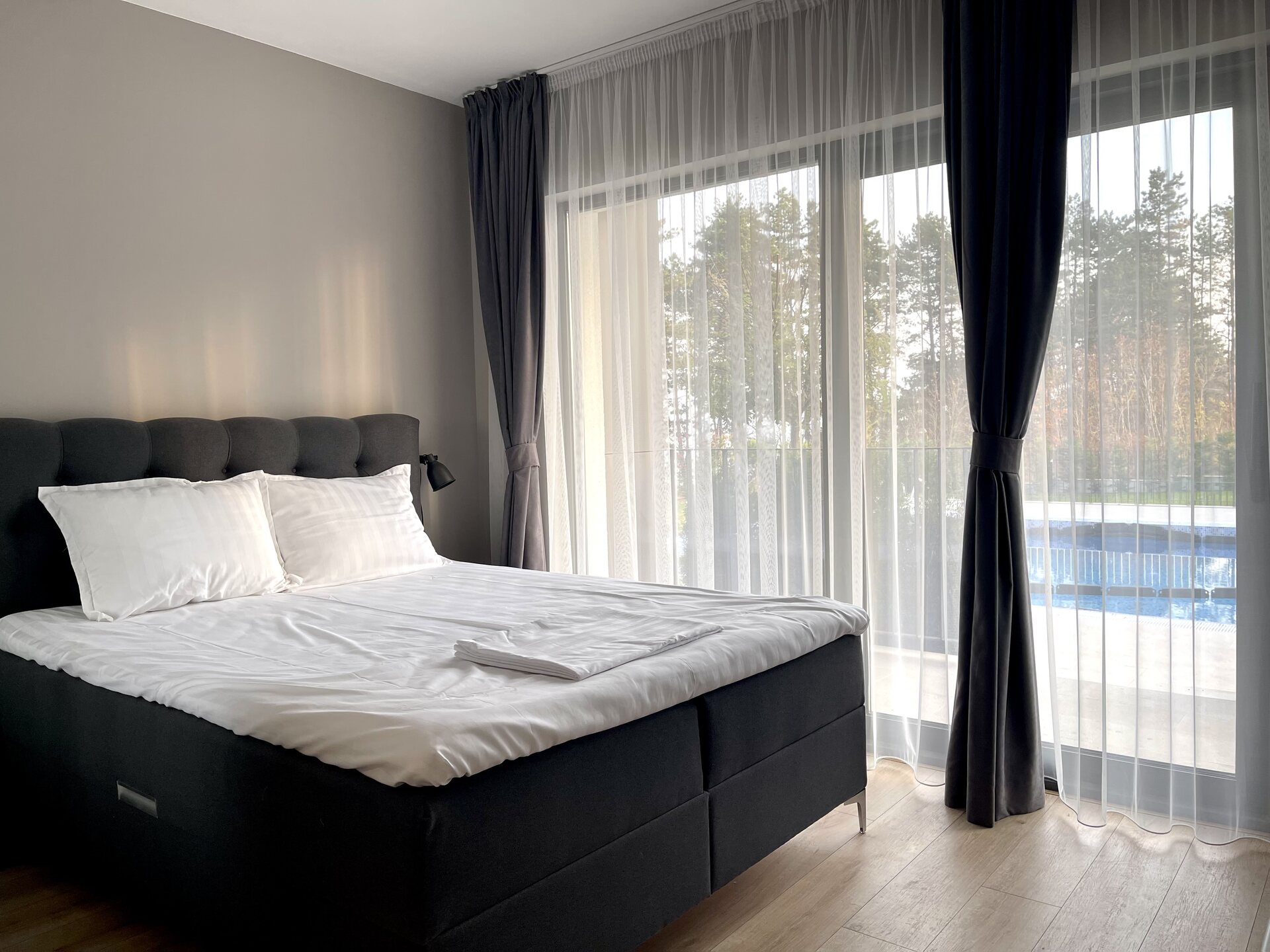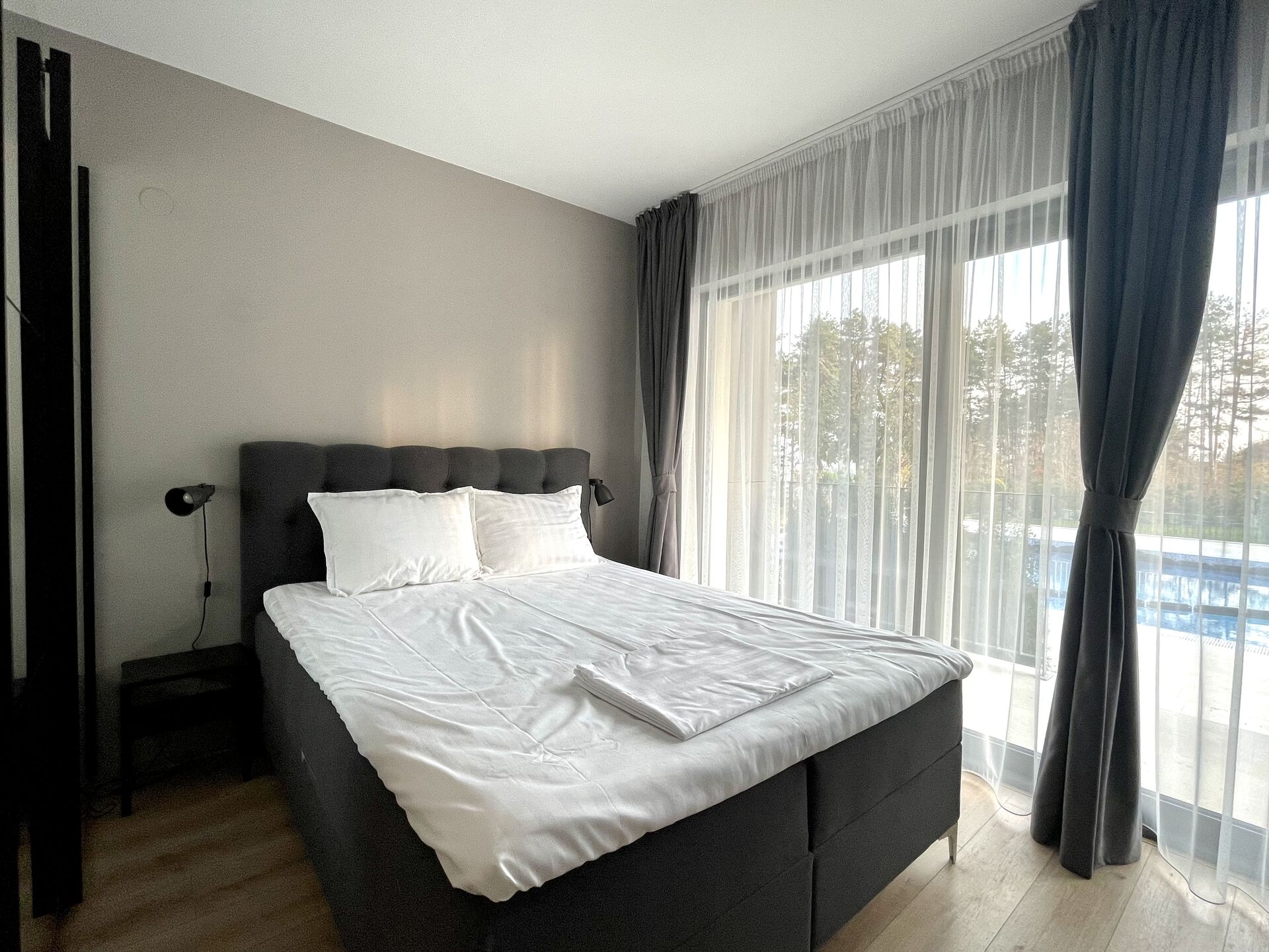 Enjoy the sea view directly from the windows of your apartment. The sea air with pine notes helps to restore strength and relax. 50 meters from the complex, descending a beautiful staircase along a cliff with pine trees, you will get to a spacious sandy beach equipped with sun beds and umbrellas for residents and guests of The Open Sea Residence. This is one of the best beaches on the Black Sea coast. If you prefer to relax by the pool – you can sit on the sun loungers right on the territory of the apartment, taking your favorite cocktail at the bar.